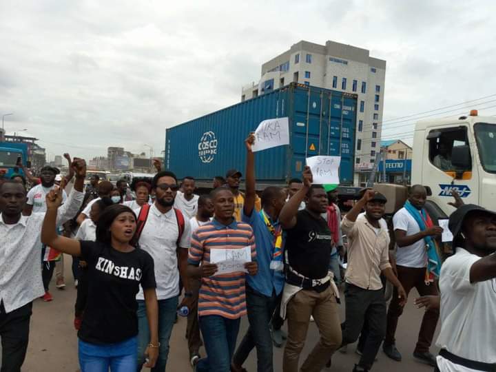 Les manifestants brandissaient des calicots et des banderoles contre la taxe sur le Registre des appareils mobiles (RAM) et contre les membres de la Commission électorale nationale indépendante (Céni). « RAM est un vol » pouvait-on lire sur une banderole. La taxe RAM est jugée « illégale » par le Parlement, mais elle est toujours prélevée sur les téléphones de la majorité des Congolais qui vivent avec 1,25 dollar par jour.