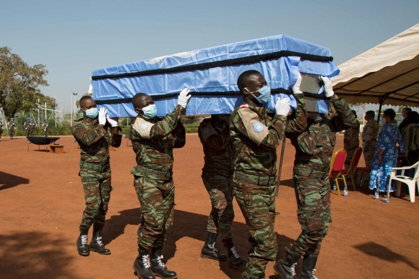Les membres de la mission des Nations unies et le secrétaire général adjoint de l’ONU Jean-Pierre Lacroix ont rendu hommage lundi à Goma – en l’absence des autorités congolaises – à cinq Casques bleus tués en une semaine dans l’est de la République démocratique du Congo, a constaté une équipe de l’AFP.