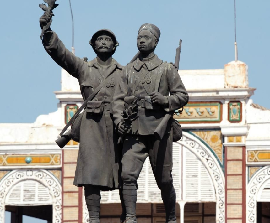 Cette statue, réalisée dans les années 1920, fut placée en 2004 devant la gare de Dakar, sur la place des Tirailleurs, quand l’ex-président sénégalais Abdoulaye Wade institua une journée en mémoire de ces soldats africains.