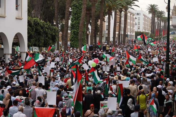 La manifestation, ponctuée aussi de prières contre « la tyrannie et l’oppression » et de chants palestiniens, est la plus grande du genre depuis la normalisation entre le Maroc et Israël fin 2020 sous parrainage américain.