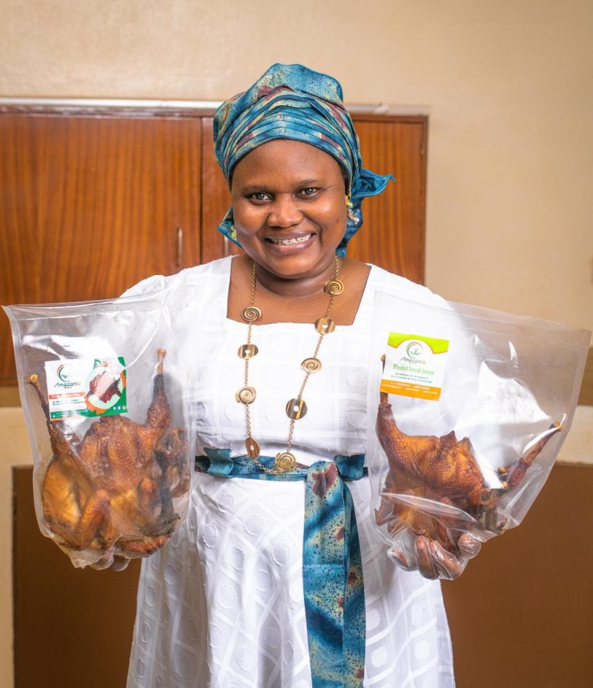 Au Burkina Faso, Oumou Ouedraogo se propose de fumer et de sécher la viande de volaille afin d’optimiser au mieux sa conservation et de proposer ainsi des aliments de qualité à la population. À travers sa startup « Amazonia Services », elle offre aux consommateurs des produits de volaille locaux transformés incluant des poulets et des pintades séchés et fumés.