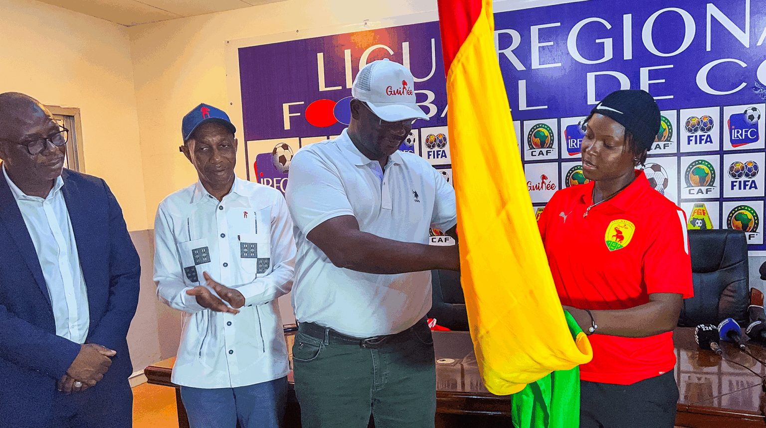 « Nous vivons aujourd’hui un événement extrêmement important dans l’histoire du football guinéen », a rappelé le ministre, Keamou Bogola Haba. « Vous êtes les toutes premières joueuses à représenter officiellement la Guinée dans cette discipline. Après plus de 60 ans d’indépendance, c’est un moment historique, non seulement pour vous, mais aussi pour l’encadrement, pour les autorités sportives, et pour toute la République », ajoute-t-il.