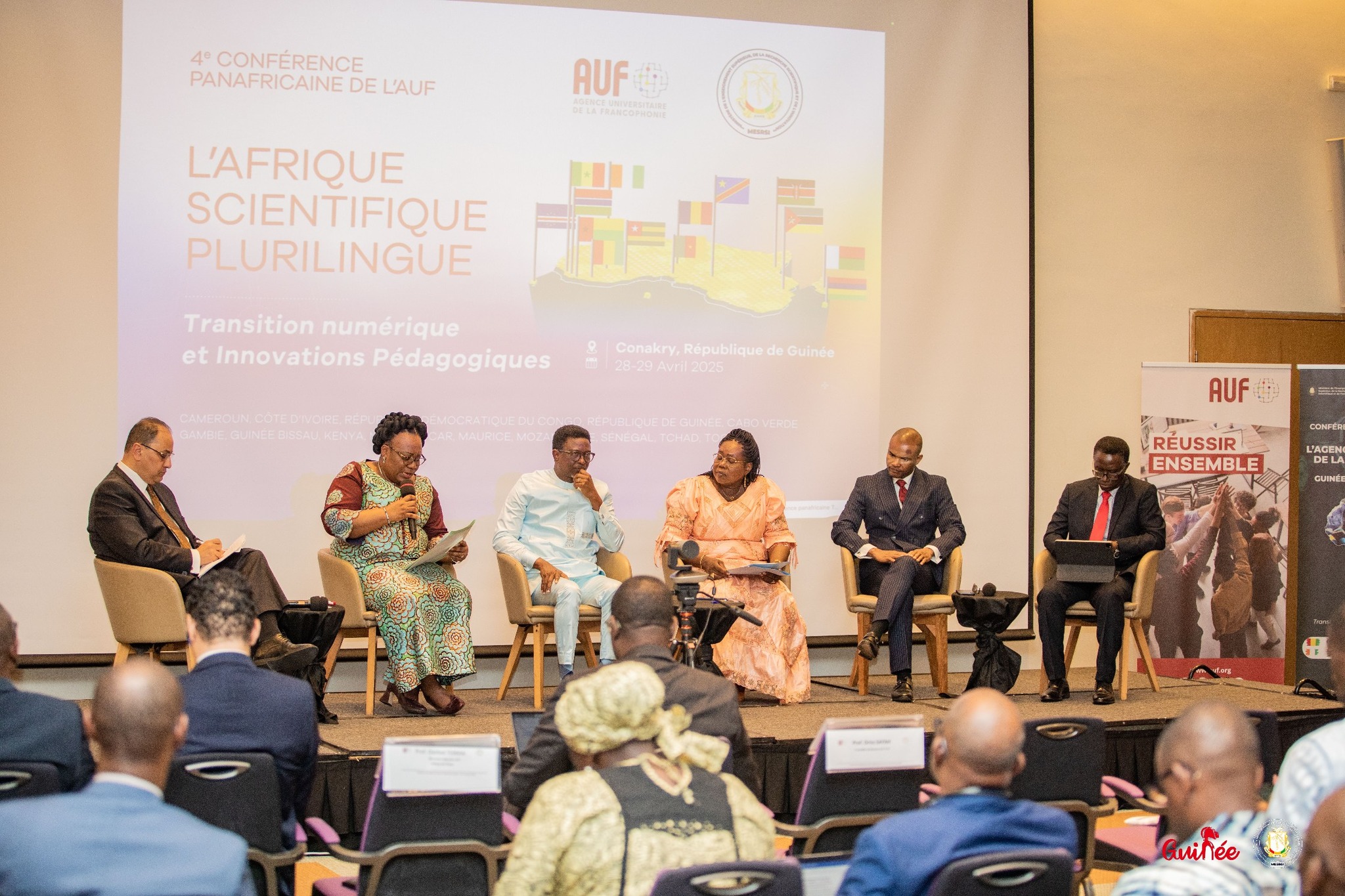 À l’occasion de la IVᵉ conférence panafricaine de l’Agence universitaire de la Francophonie (AUF), un rendez-vous majeur réunissant les acteurs clés du monde académique africain, le ministre guinéen de l’Enseignement Supérieur, de la Recherche Scientifique et de l’Innovation, M. Alpha Bacar Barry, a pris part à un panel de haut niveau. Aux côtés de ses homologues venus de la République Démocratique du Congo, du Tchad, de la Gambie et de la Guinée-Bissau, le ministre a participé à une réflexion stratégique sur le thème : « Quelles réformes politiques pour soutenir la transformation numérique de l’enseignement supérieur en Afrique ? »