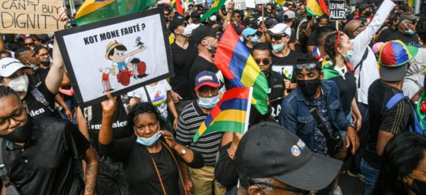 Arborant pour beaucoup le drapeau mauricien, les manifestants ont entonné l’hymne national pour insister sur le patriotisme de leur démarche, que le gouvernement avait par avance tenté de discréditer.