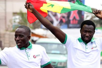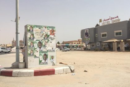 Tout sourire, devant le stade de Nouakchott, des militantes en voile coloré…